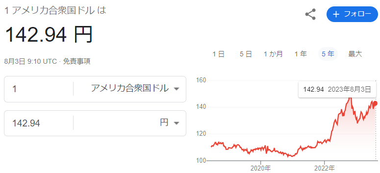 googleさんにドル円相場を聞いてみます。